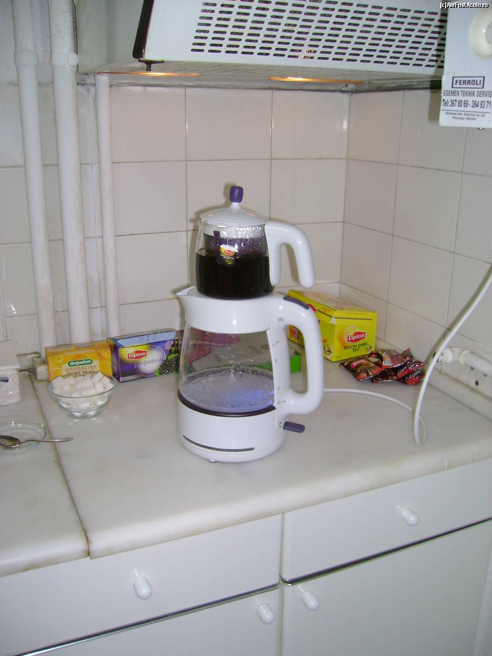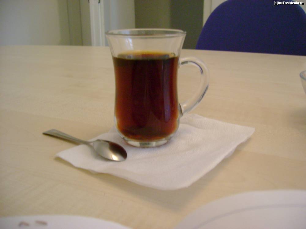 [P05] Ceaiul se pune până la jumătate și restul se completează cu apă fiartă. Poți cere să ți se aducă un pahar cu toartă. În Ankara ceaiul nu se bea cu cana, ci cu aceste păhărele dar care nu au toartă în mod obișnuit.