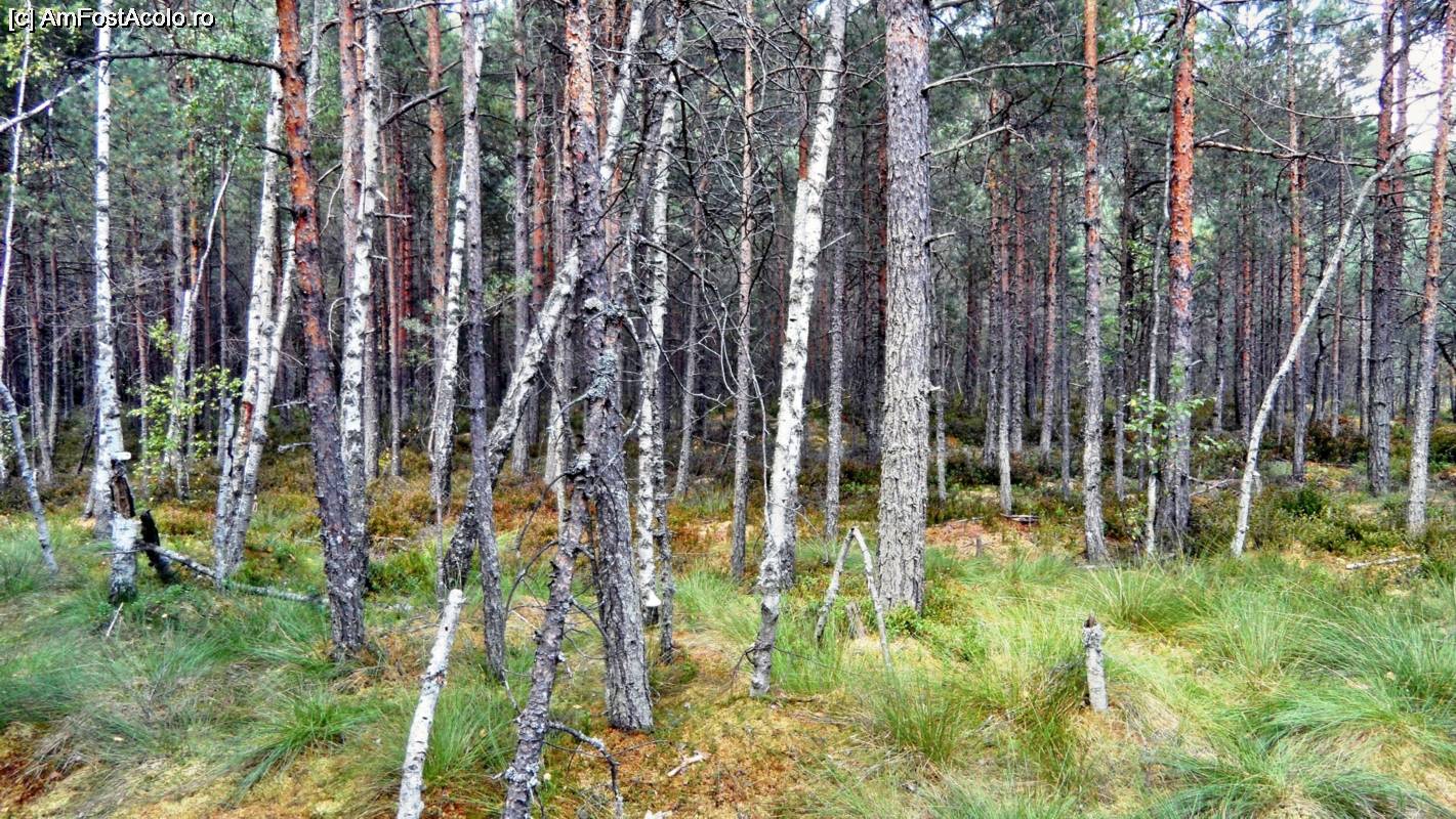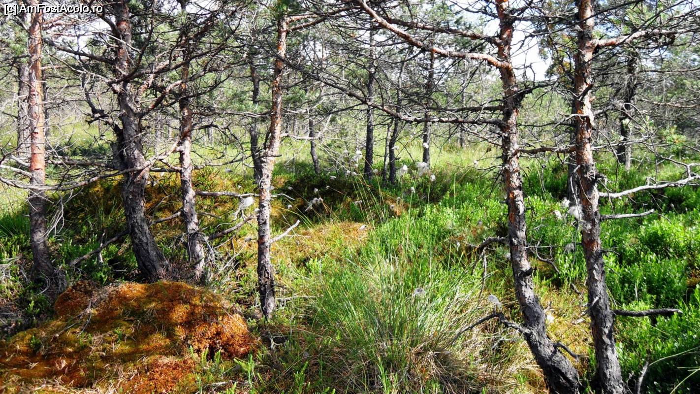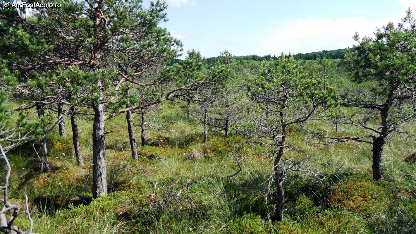 [P05] Suntem la marginea tinovului. Pinii au încă o înălțime rezonabilă. Cei care se încumetă (seamănă binișor cu nebunelele) culeg afine și merișoare.