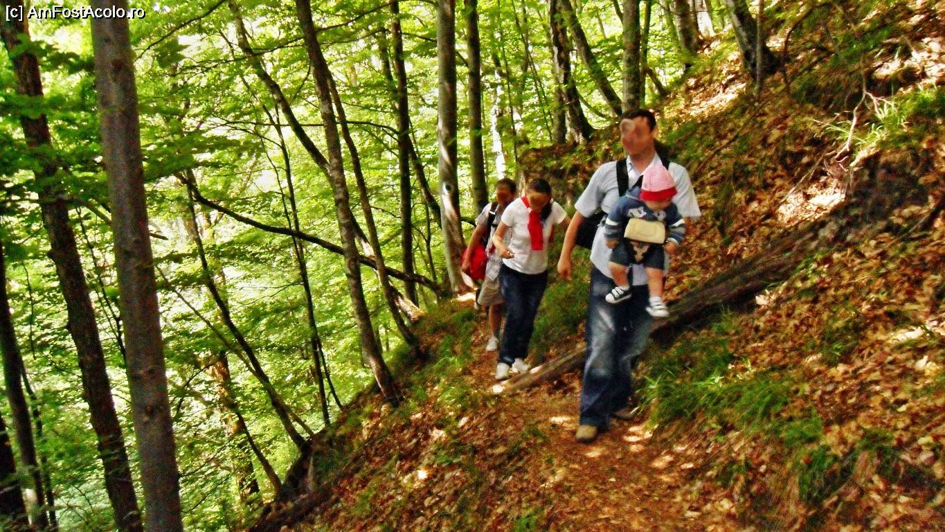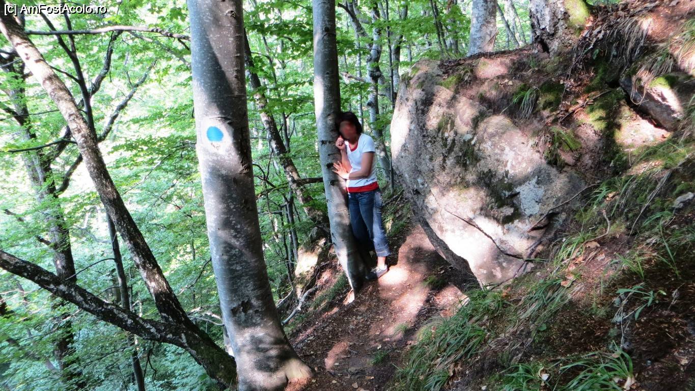 [P24] În zona de după Grota (Peștera) cu Alaun pe cărarea marcaj bulină albastră apar și câteva obstacole care trebuiesc depășite cu atenție. Versantul muntelui, după cum se vede, este foarte, foarte înclinat.