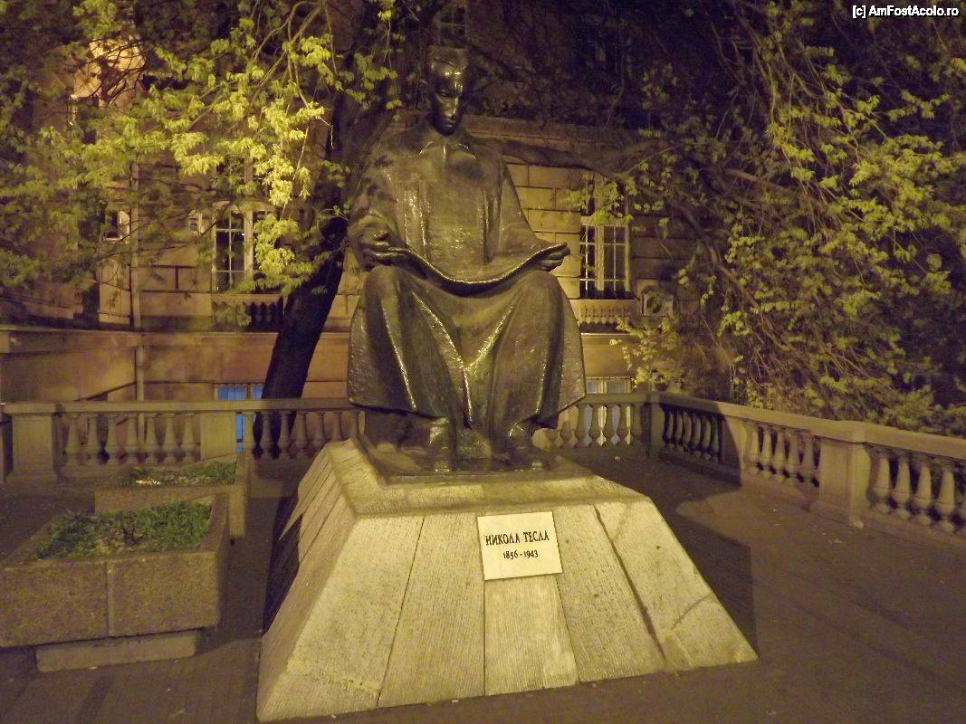 [P209] Instantanee belgrădene nocturne - statuia lui Nikola Tesla din fața clădirii politehnicii
