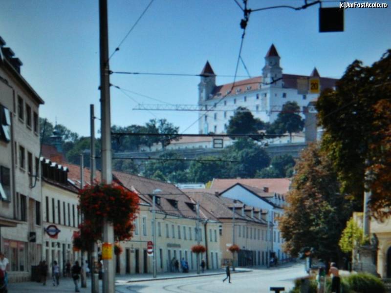[P03] Bratislava, vazuta din autocar, cu Castelul Bratislava asezat deasupra orasului...