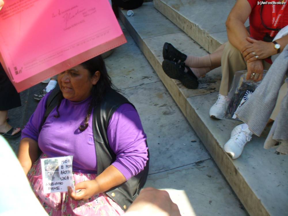 [P06] Tziganca din Romania la cersit pe scarile de vis-a-vis de Palatul Uffizi, ne-a agasat si pe noi si cind i-am spus: "ne lasi!" a inceput sa ne injure in limba romana