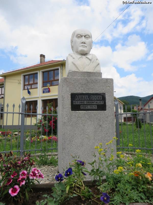 [P12] Școala nouă și bustul lui Aurel Decei.