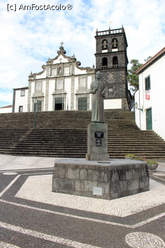 [P68] Insula Sao Miguel, Ribeira Grande, Igreja Matriz de Nossa Senhora da Estrela, în față Statuia lui Gaspar Fructuoso, istoric și preot azorean