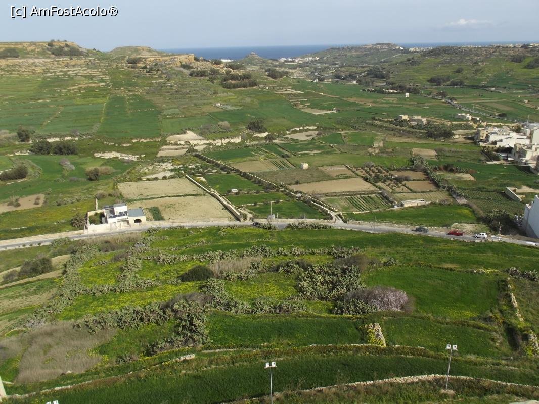 [P37] Vedere de pe zidurile Citadellei spre câmpurile verzi din Gozo până la mare