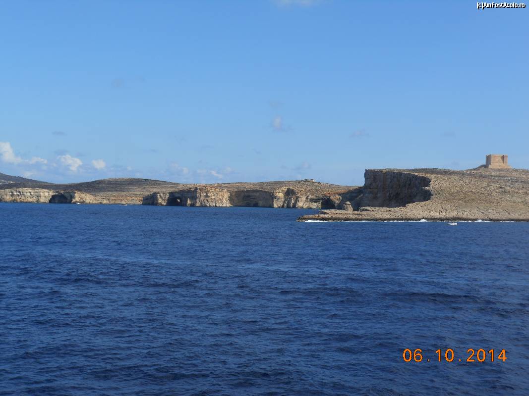 [P02] Insula Gozo - Turnul Roşu şi ţărmul maltez văzute de la bordul feribotului "Ta'Pinu".