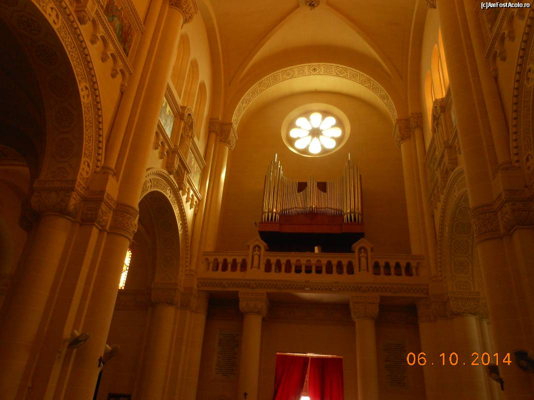 [P07] Gozo - Biserica "Our Lady of Ta' Pinu", orga, fereastra rozetă şi decoraţiuni interioare.