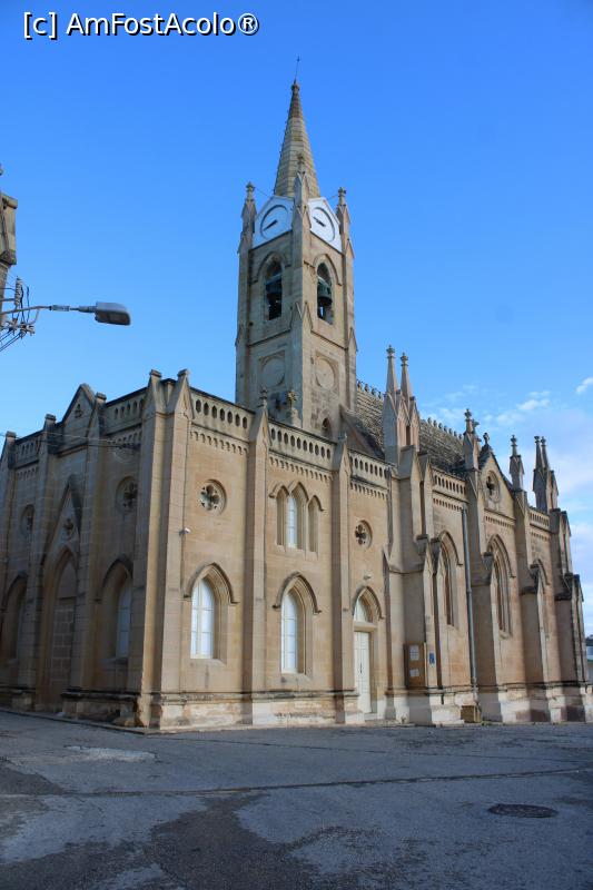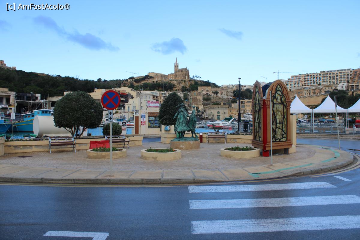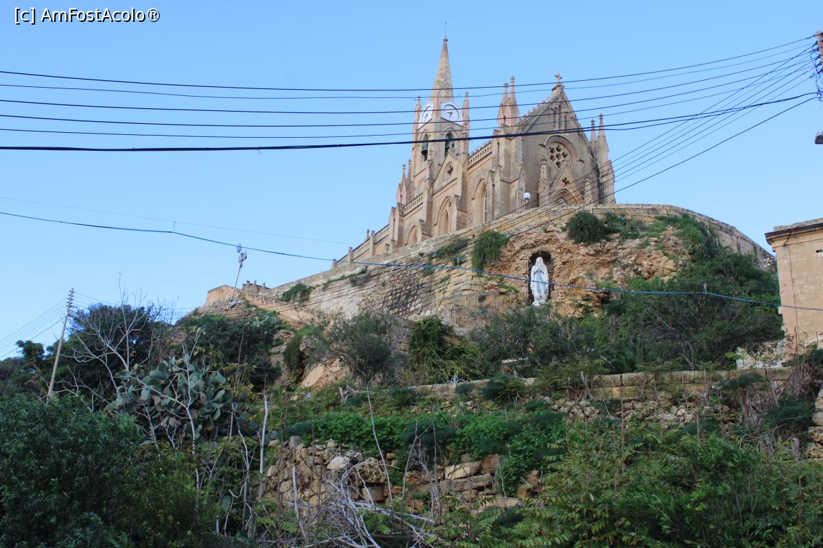 [P03] Malta, Insula Gozo, Mgarr, zona portului, vizavi de clădirea Terminalului pentru ferry, sus pe deal Biserica Madona din Lourdes, mergem spre ea...