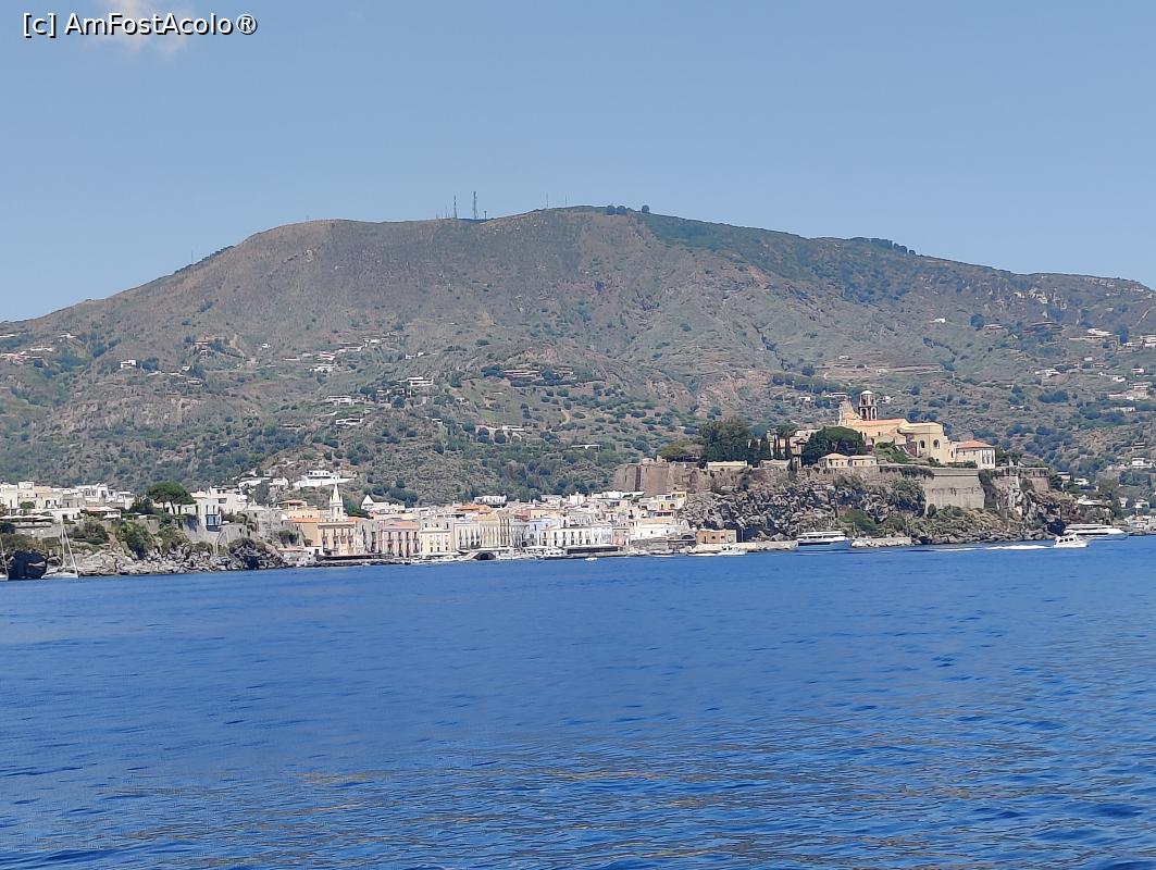 [P35] La pas prin Insula Lipari; vedere spre port de lângă biserică