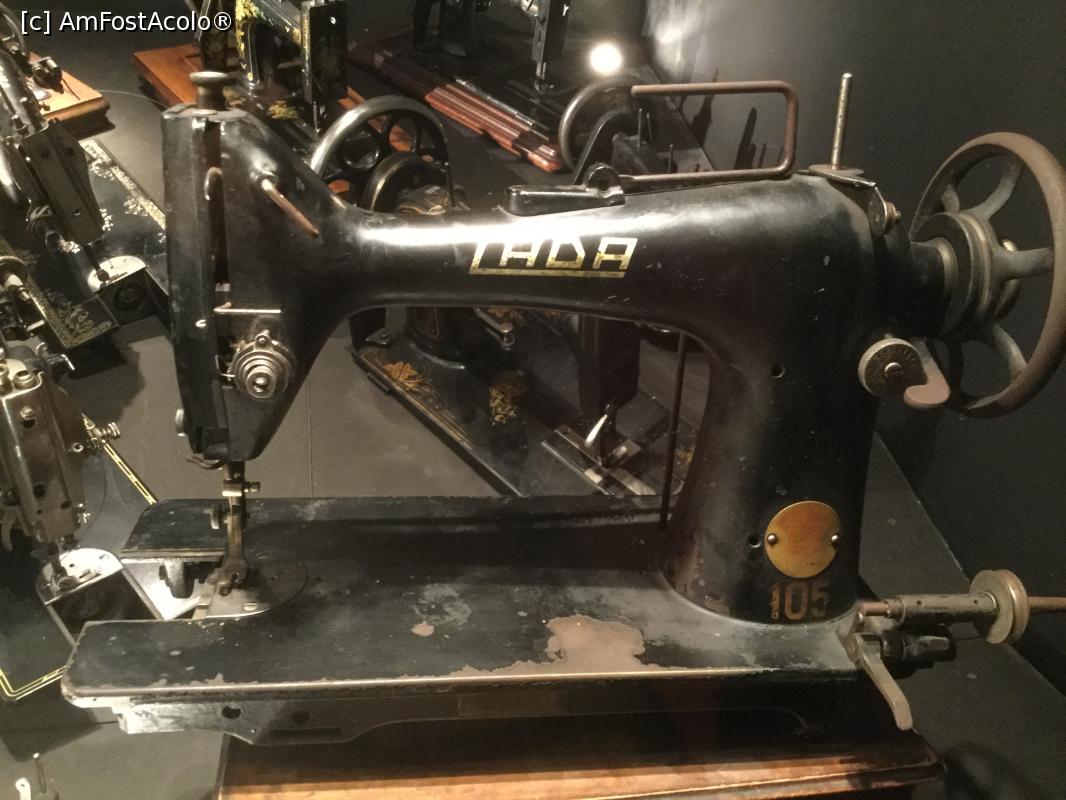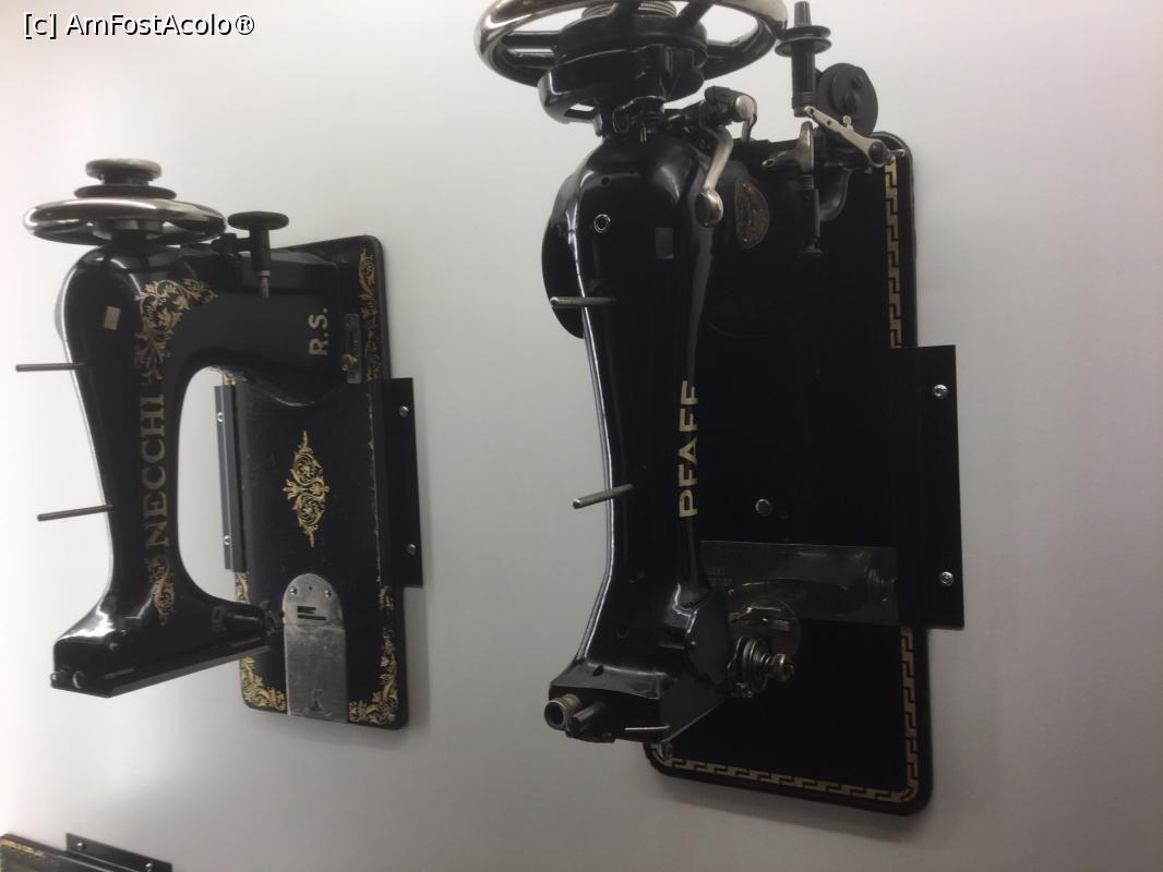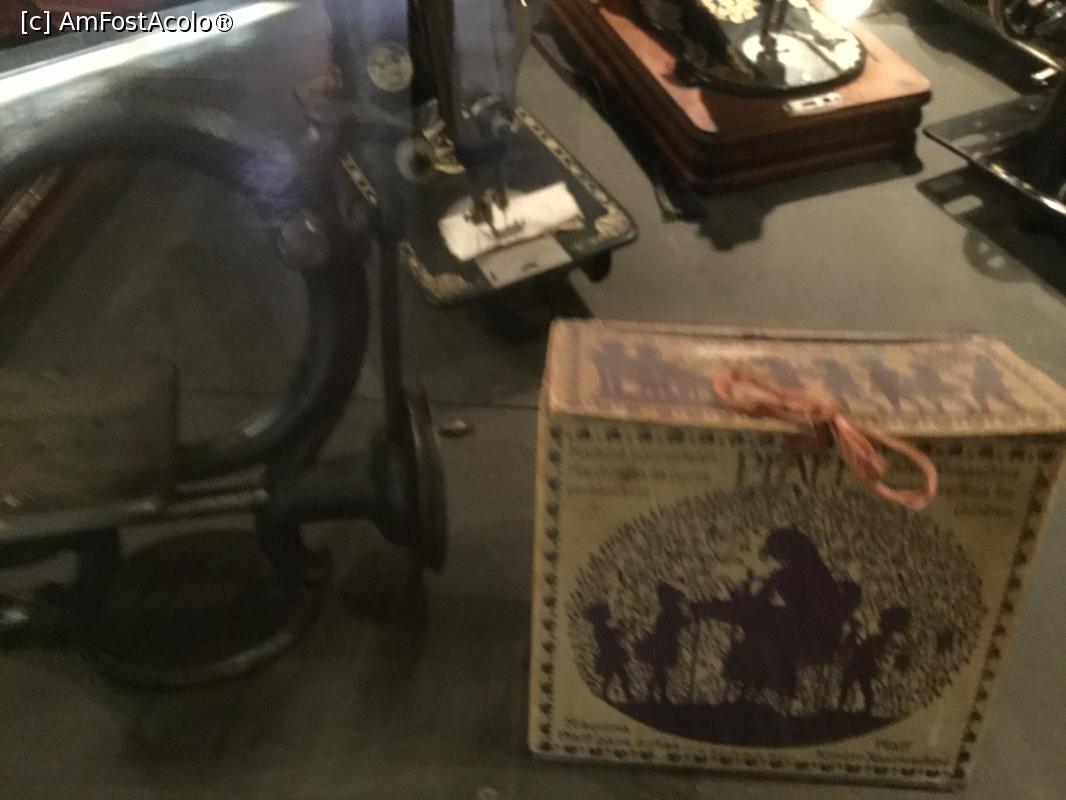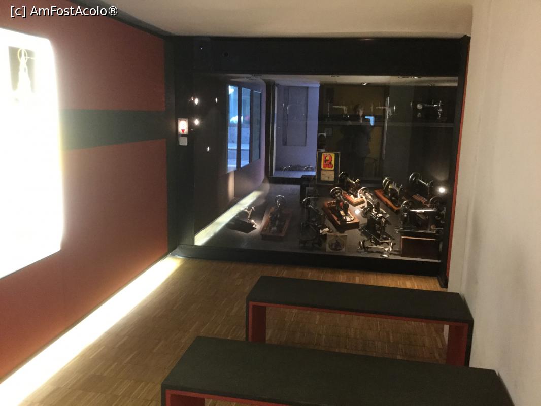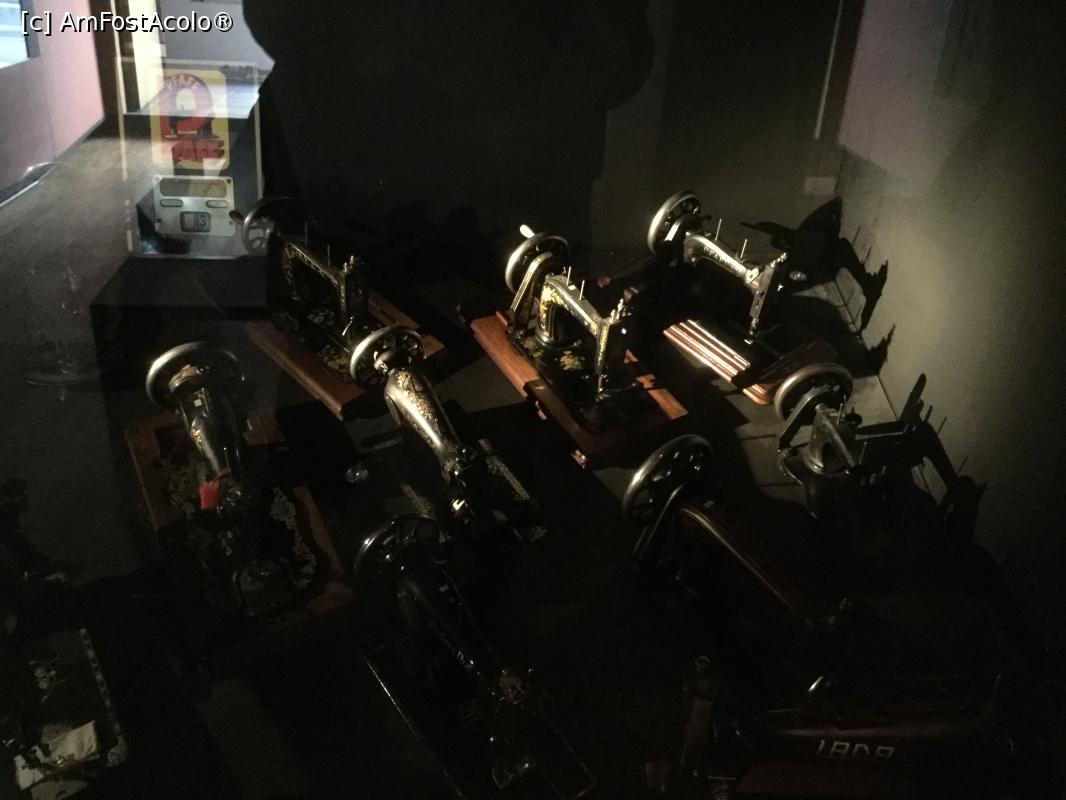 [P08] In fata se vede o vitrina in spatele careia sunt masini de cusut vechi, numai ca sunt in "bezna", daca stati pe bancute si asistati la filmulet, se lumineaza parti din ce e in spatele geamului