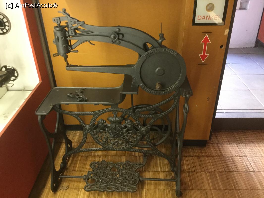 [P04] O masina de cusut veche so in spatele ei se vad cele 2 fante prin care se pot face donatiile