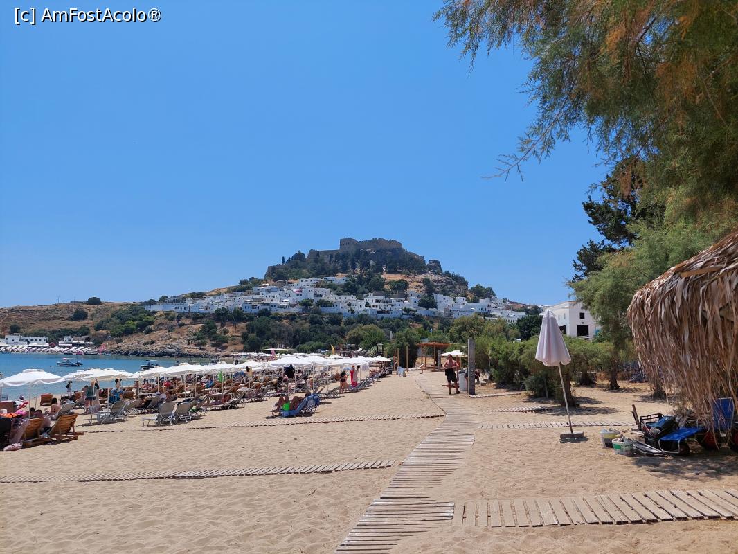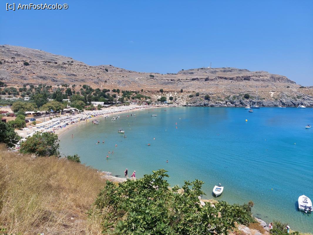 [P85] Plaja Lindos și vedere spre Acropole.