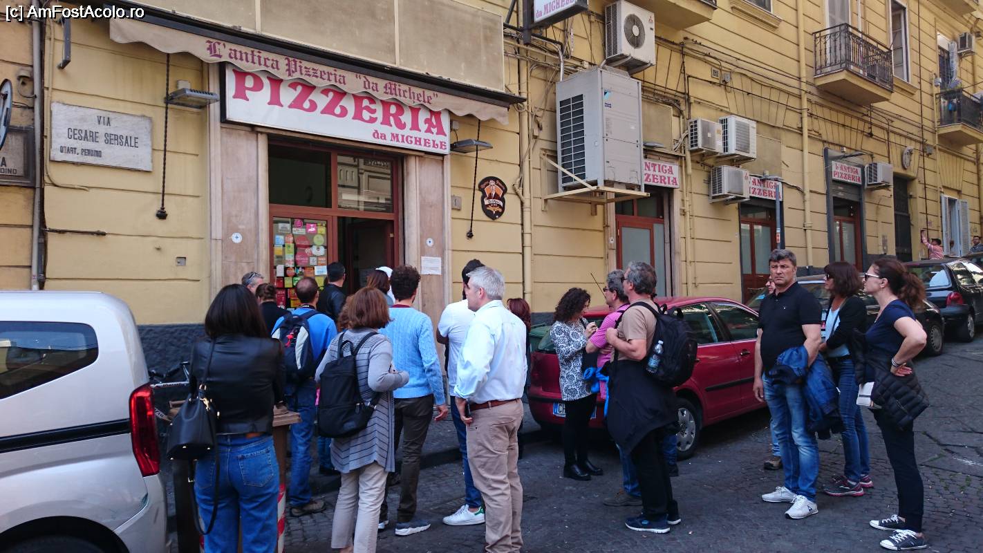 [P20] Intrarea la vestita pizzerie DaMichele. Toti oamenii asteptau bon de ordine.
