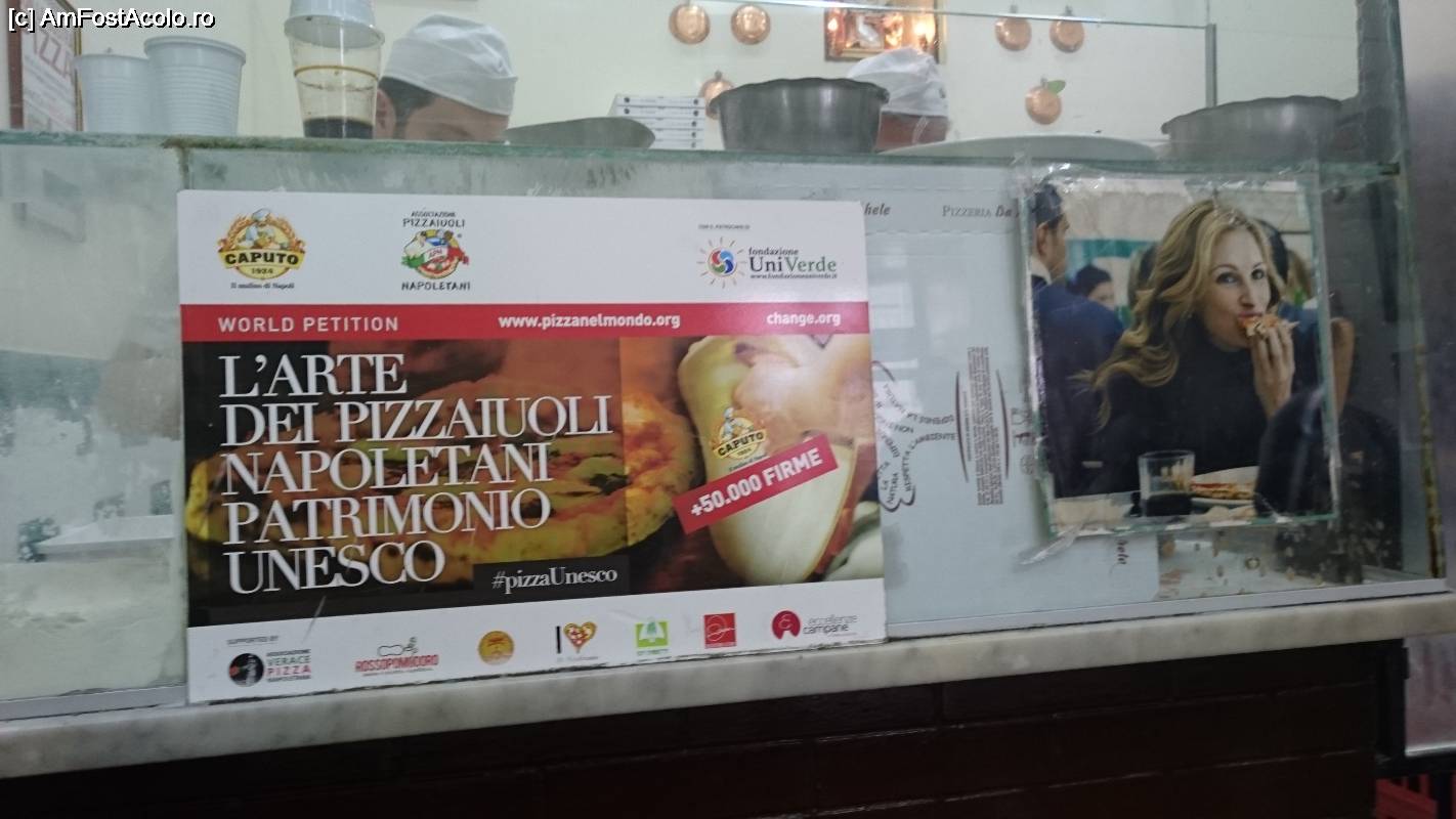 [P22] Julia Roberts, care a filmat in pizzeria Da Michele. Peretii sunt plini de personalitati care le-au trecut pragul.