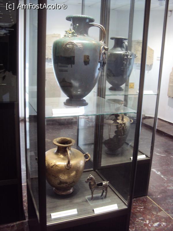 [P20] 20. Vitrina cu vasele ornate, din bronz, și calul ce seamănă cu cel din Roma.