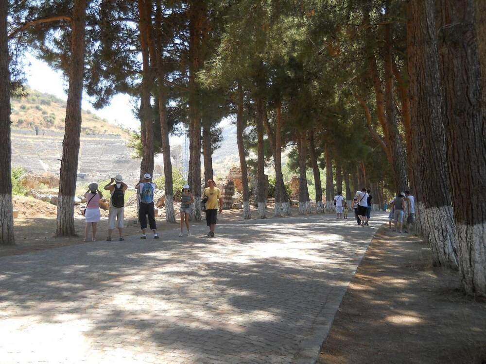 [P03] Aleea cu pini, racoroasa, aflata la intrarea in situl antic. In partea dreapta aveti toaletele moderne.