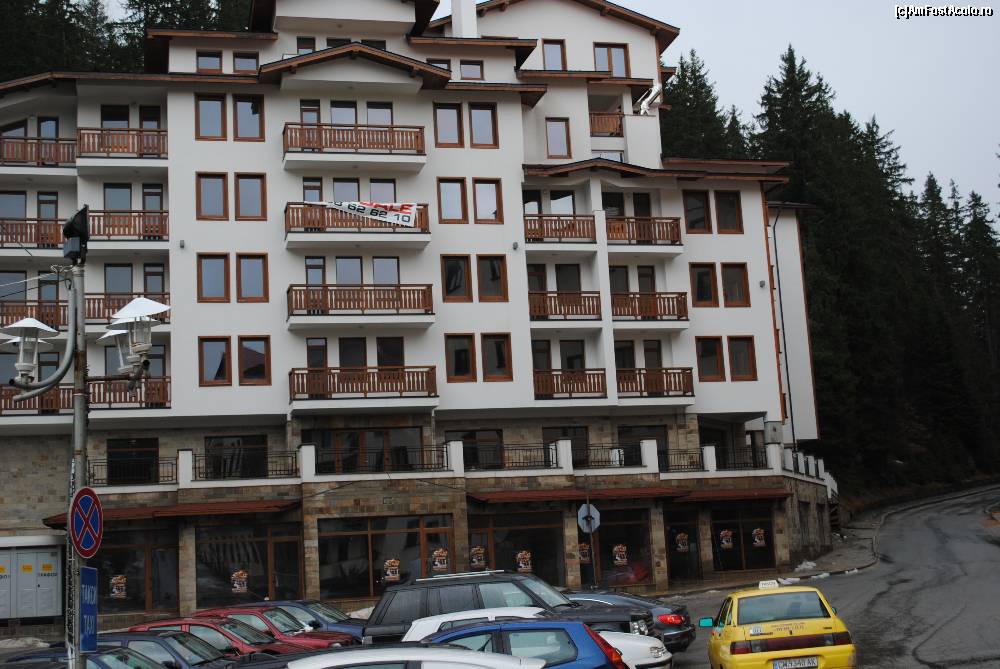 [P06] Apartamente de vanzare. Fata in fata cu hotelul de 5 stele Pamporovo. Par cam parasite. Nu se vedea nici un apartament locuit. Preturile din ce scria acolo erau foarte mici