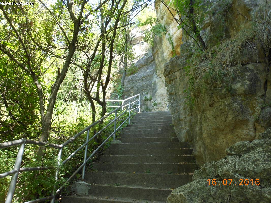 [P03] Cerven - Scara de acces la cetatea medievală și peretele de stâncă din dreapta.
