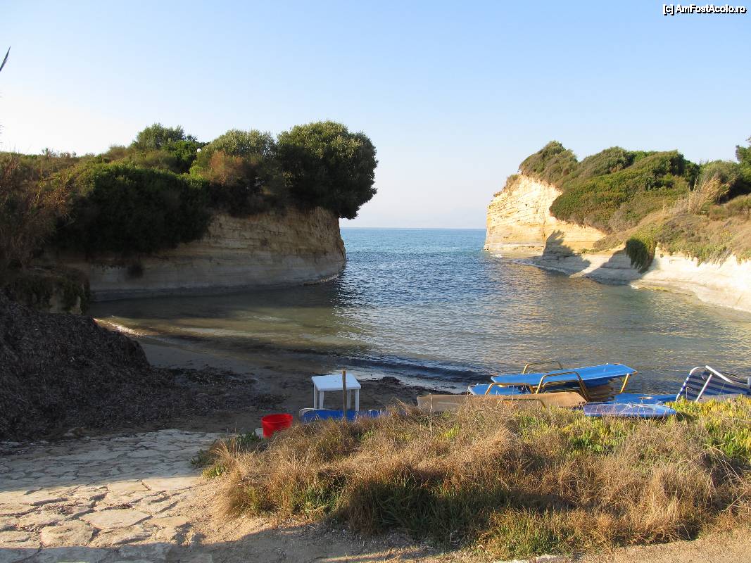 [P04] Canal d'Amour, Sidari- plaja mica a golfului- amenajata cu sezlonguri (erau stranse deja, era seara)