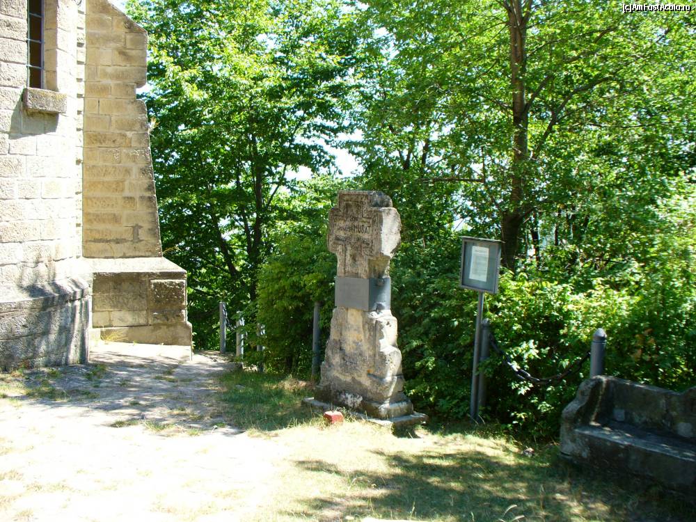[P19] Monumentul Eroilor - in stanga se vede o banca din piatra si crucea de piatra a sergentului post mortem Constantin Musat