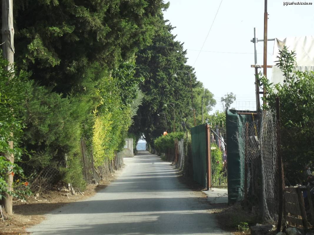 [P31] Drumul îngust către plaja Plaka. În zare se observă marea.