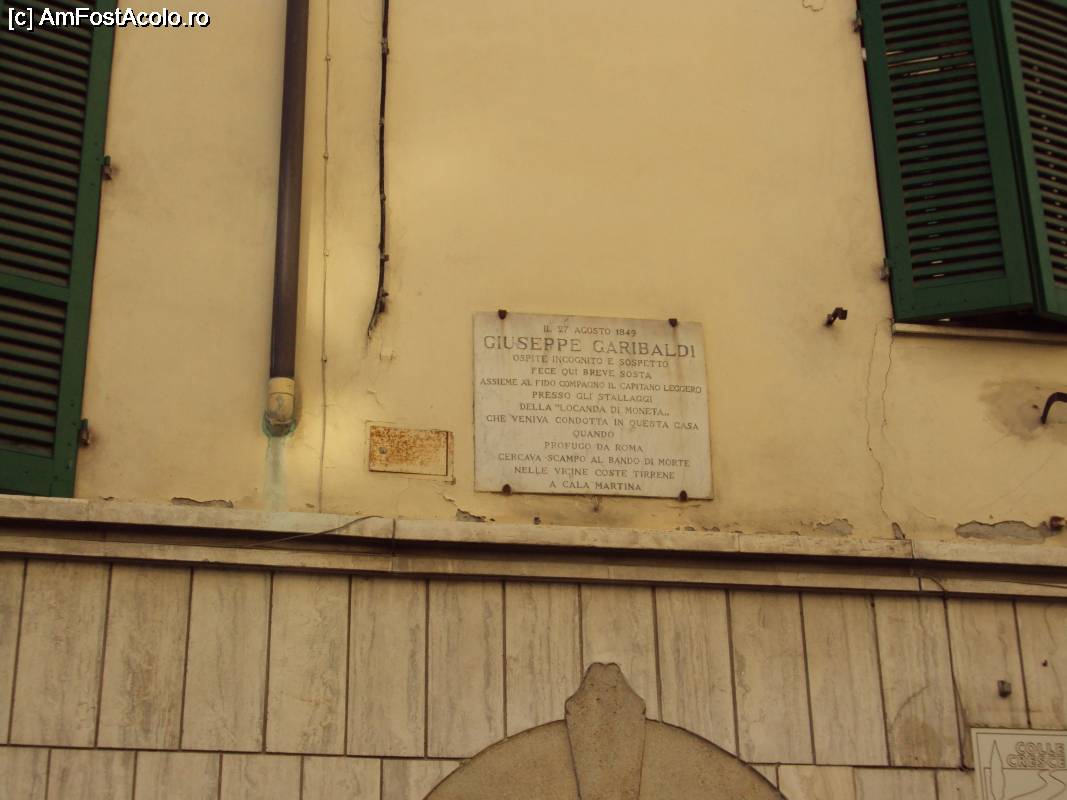 [P08] Plăcuţa care informează că în 1849 Garibaldi a poposit incognito în Colle.