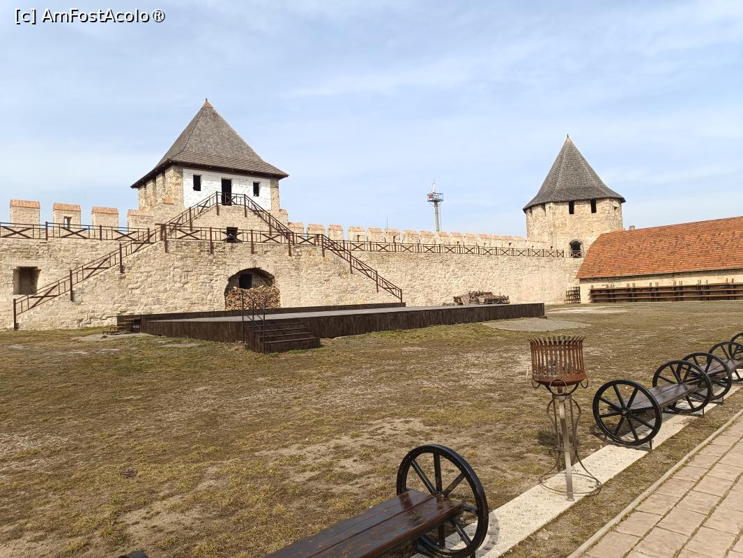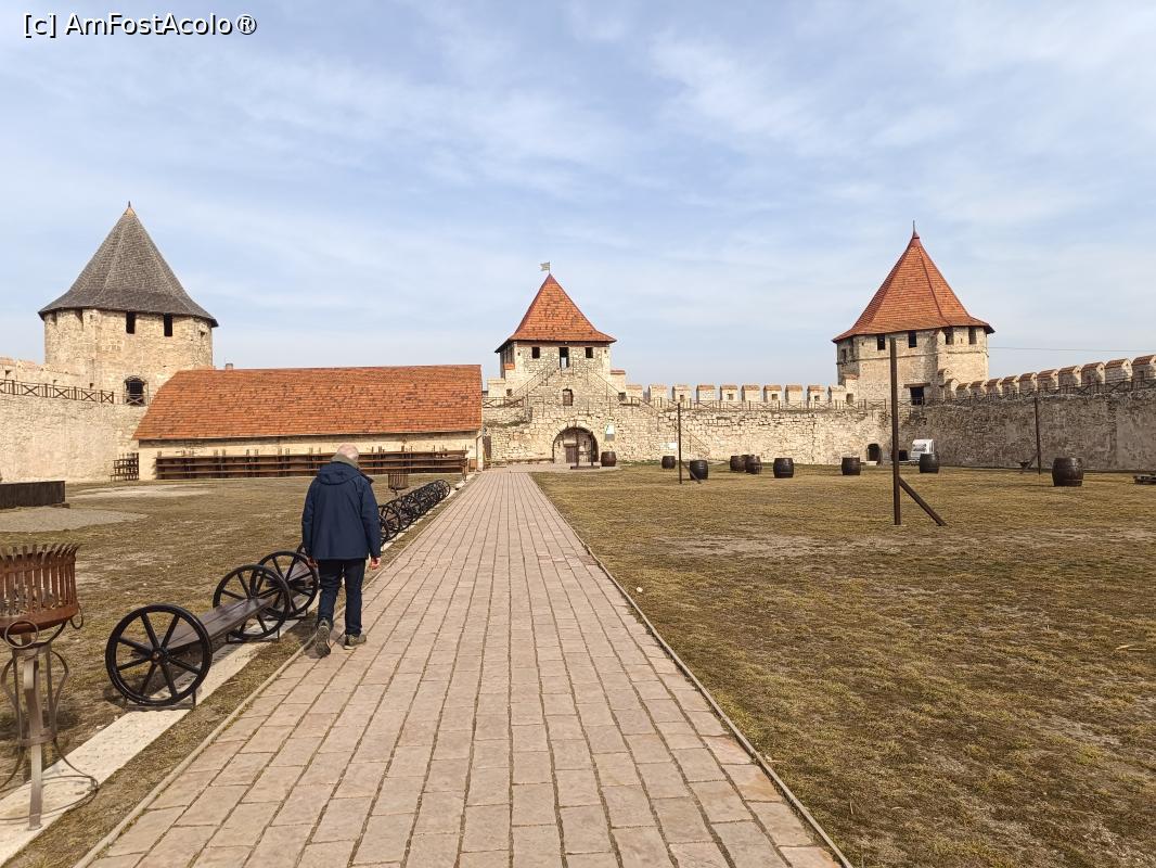 [P03] Cetatea Tighina - Bender, în curtea interioară dintre cele două turnuri, Turnul de Pază în stânga și Turnul de Poartă în dreapta, ne plimbăm pe lângă ziduri, poză micșorată la jumătate...