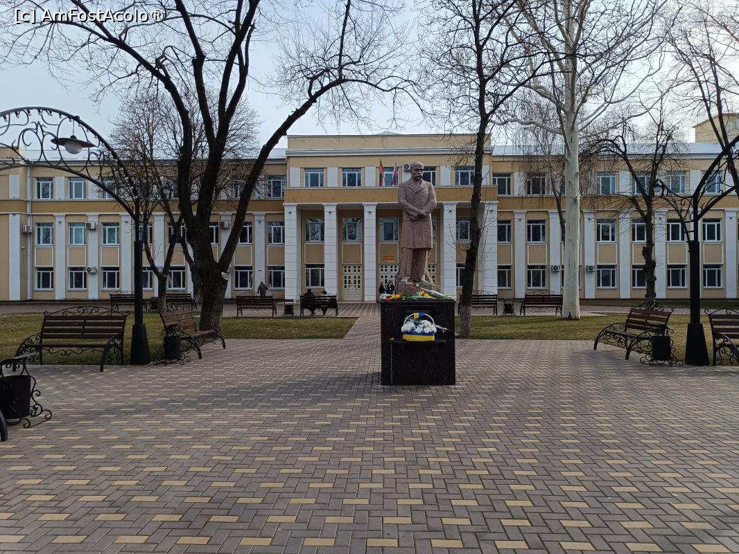 [P21] Tiraspol, Piața Teatrului, Monumentul lui Harry Potter, se vede și puțin din corpul universității...