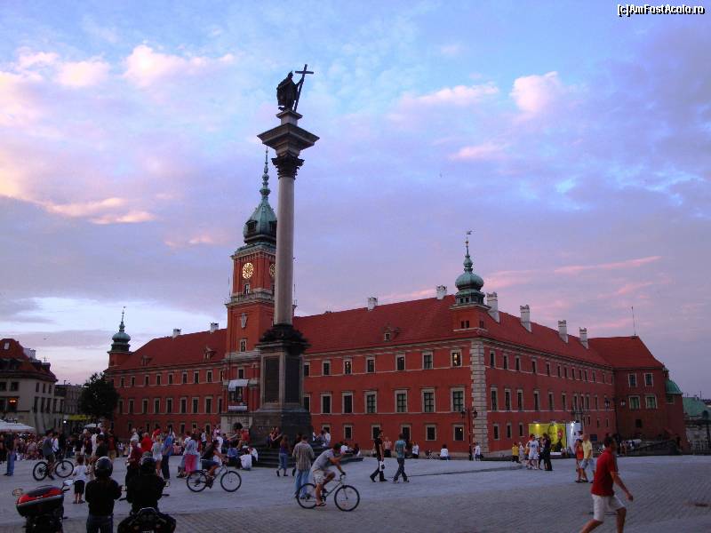 [P30] Varșovia: Castelul regal(în prim plan coloana regelui Sygmunt III din dinastia suedeză Vasa)