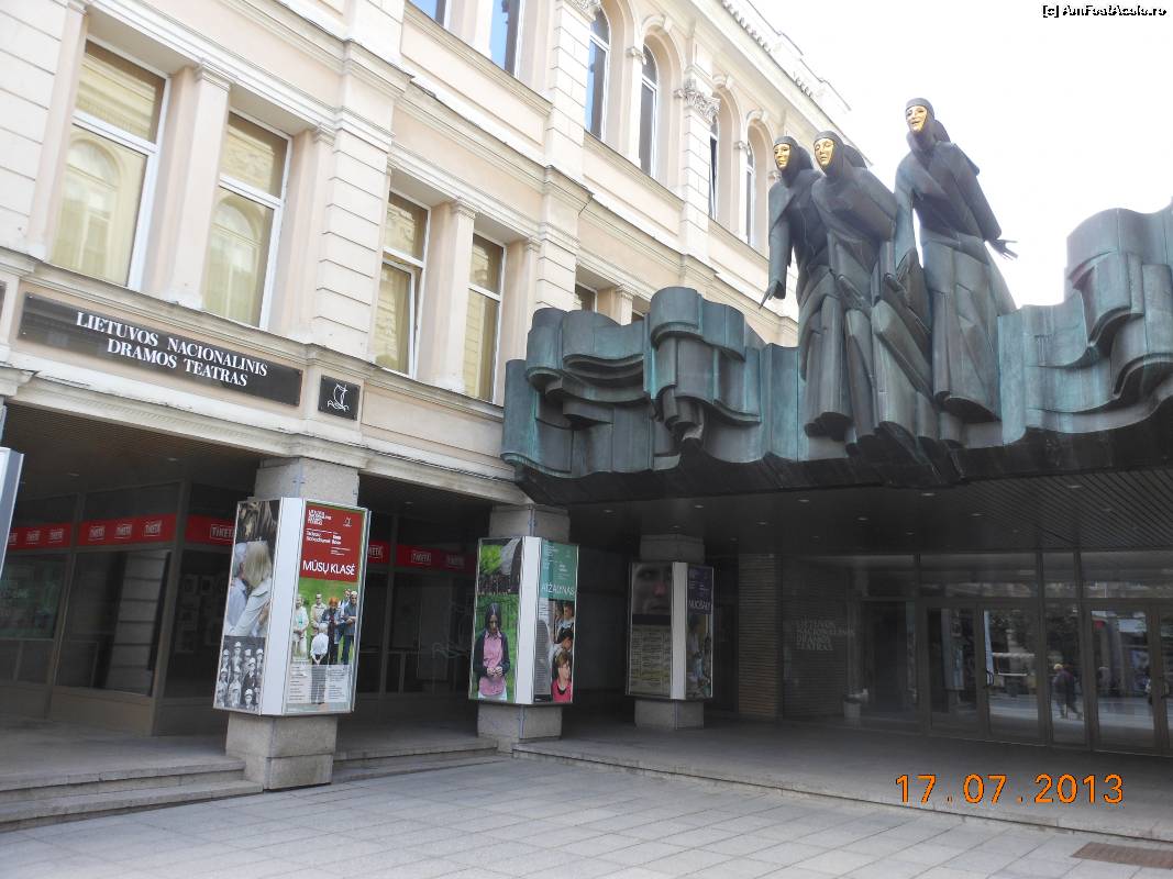 [P06] Vilnius - Teatrul Naţional Dramatic şi simbolurile celor trei muze - Drama, Tragedia şi Comedia.