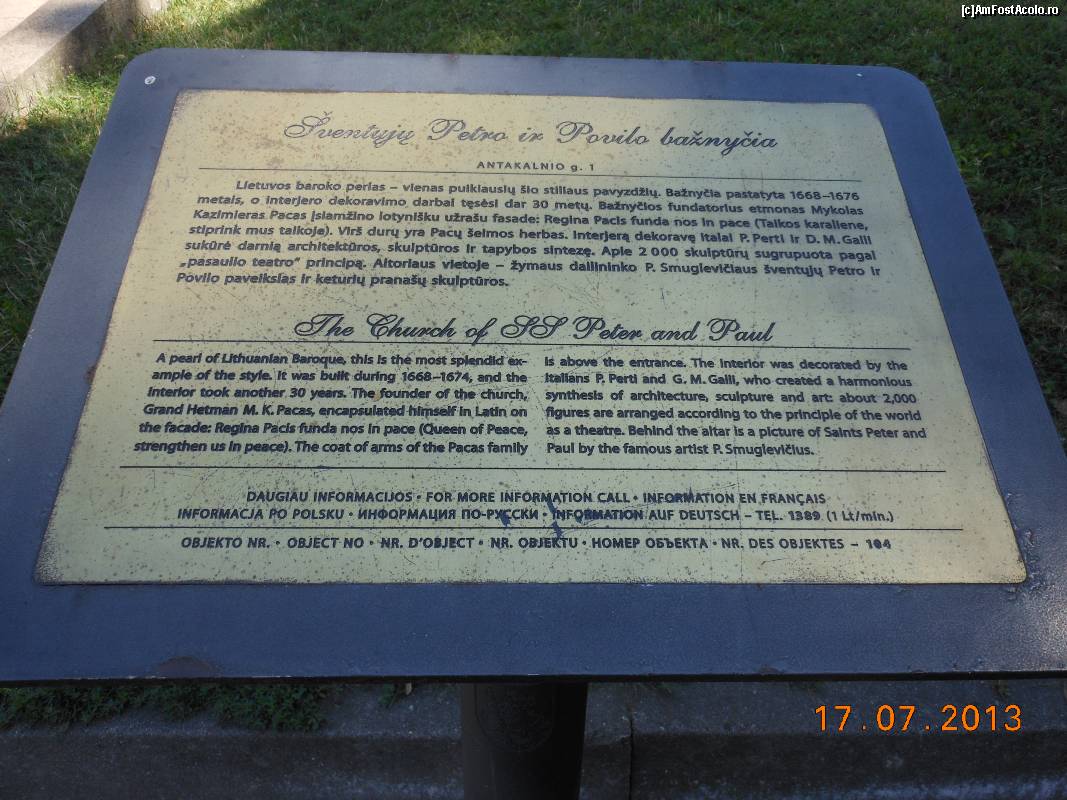 [P23] Vilnius - Biserica Sf. Petru şi Pavel. Informaţii sumare la obiectiv.