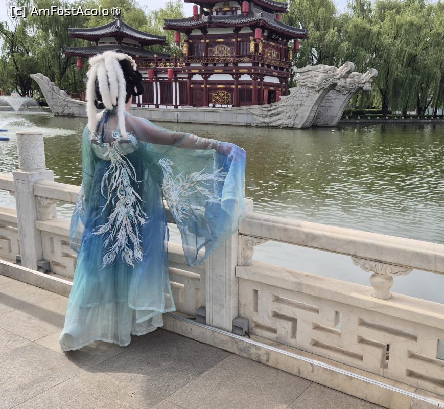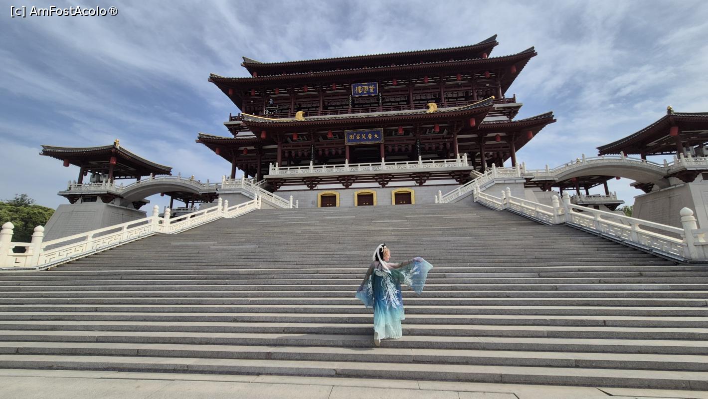 ![[P08] Ne-am intors pe mal si am pornit catre zona centrala a parcului unde se afla cladirea emblematica a Gradinii Datang, Turnul Ziyun Furong. Este reconfigurat la scara 1:1 pe baza inregistrarilor istorice, are 4 etaje si a fost odata un loc in care imparatul Xuanzong din dinastia Tang organiza petreceri de sarbatori si se distra alaturi de popor. » foto by geani anto