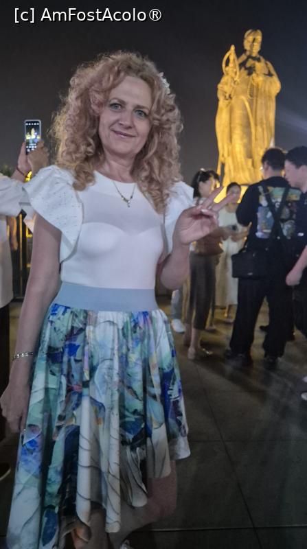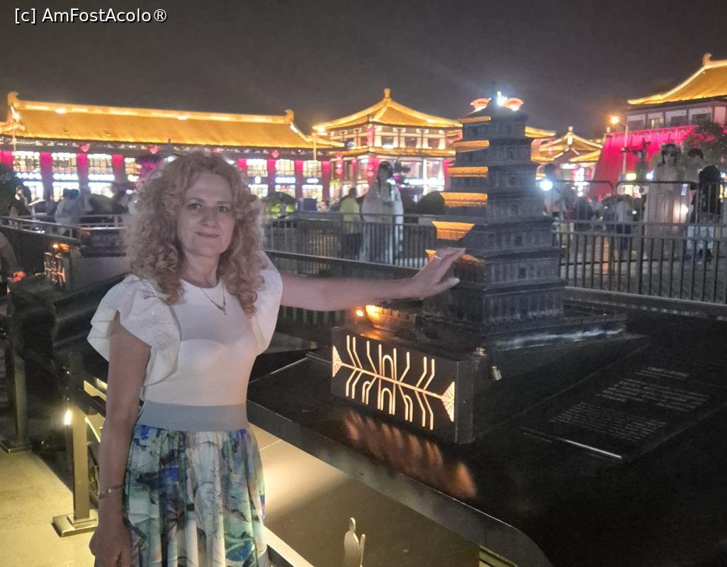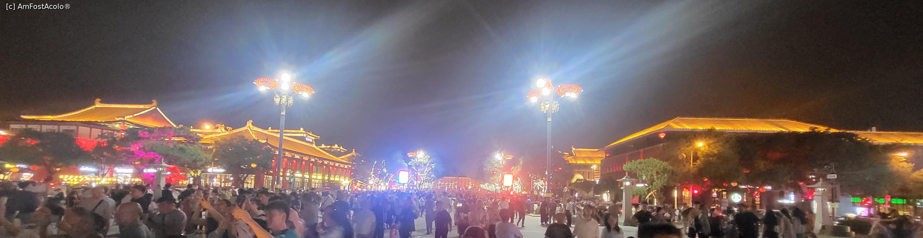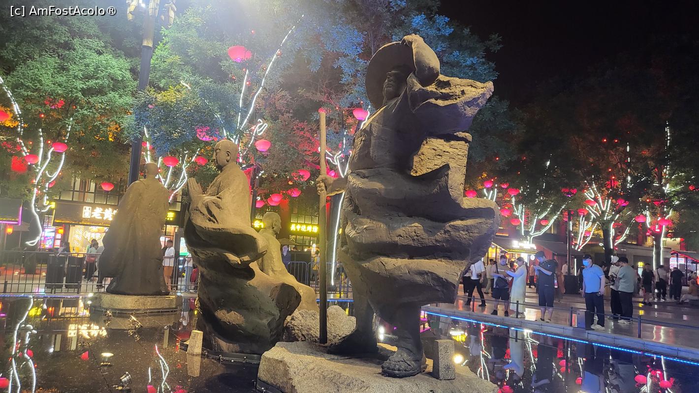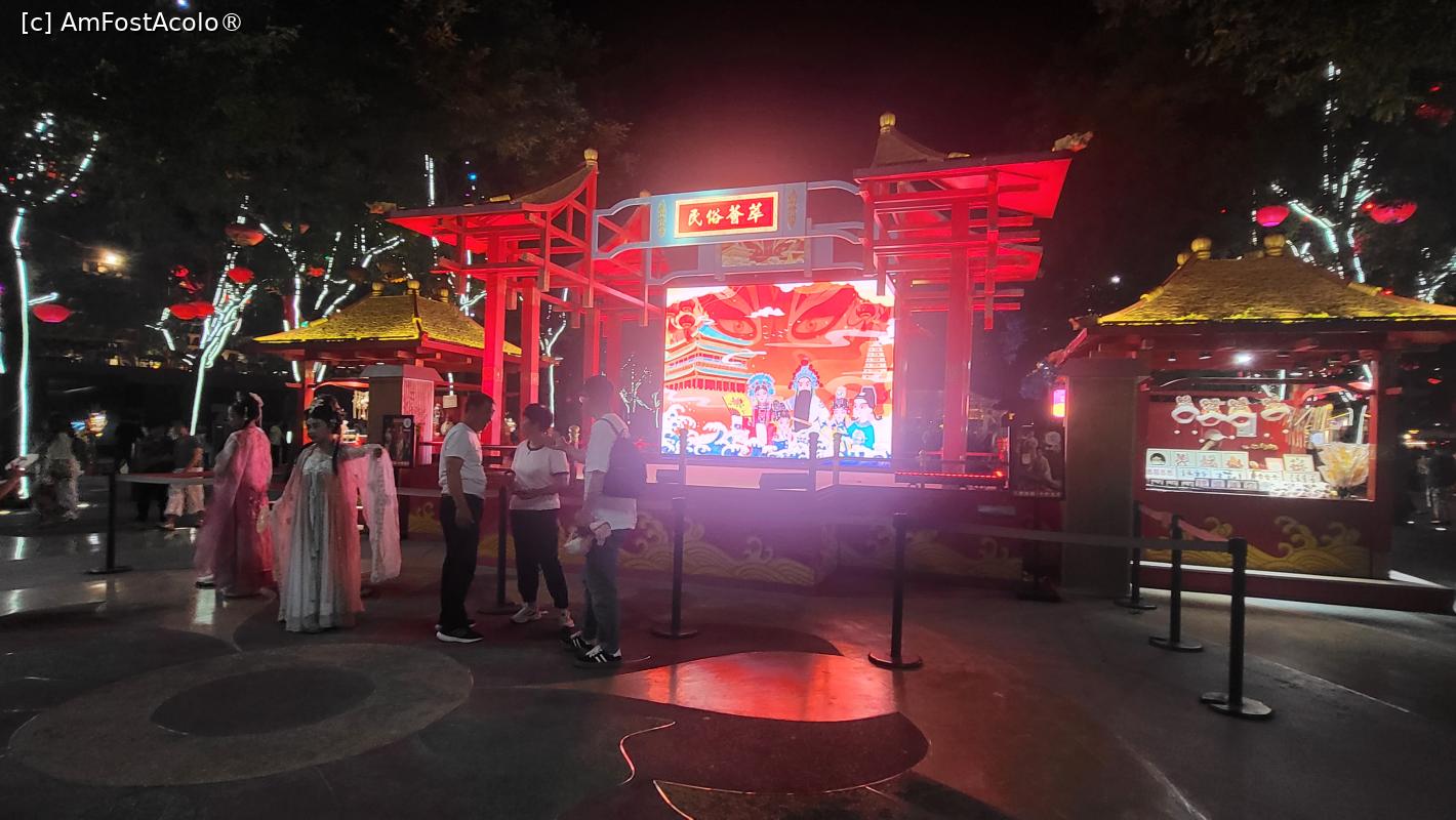 [P18] Pe langa statuile care ,,povestesc” despre prosperitatea dinastiei Tang si ne prezinta cele mai celebre personalitati ale acelei perioade, exista scene colorate pe care se desfasoara 22 spectacole, incepand cu ora 19, care dureaza cate 10 minute, ce prezinta cultura si istoria Dinastiei Tang prin forme precum dansul, compozitia si recitarea de poeme sau mici scenete. Nu te poti sincroniza astfel incat sa asisti la toate, dar poti vedea cateva, in timpul plimbarii intre scuaruri.