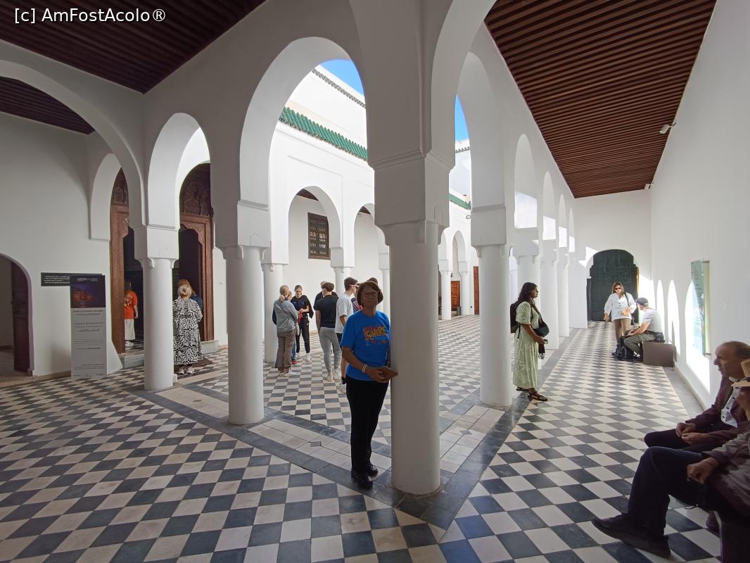 [P03] Marrakech, Muzeul Dar El Bacha, „Atrium de intrare” în Palat, cu Porticuri sprijinite pe coloane albe, în stânga este intrarea la camere și expoziții
