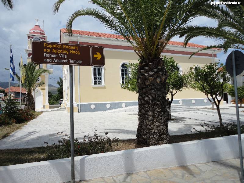 [P07] Biserica din Skala si indicatorul spre vila romana si templu.