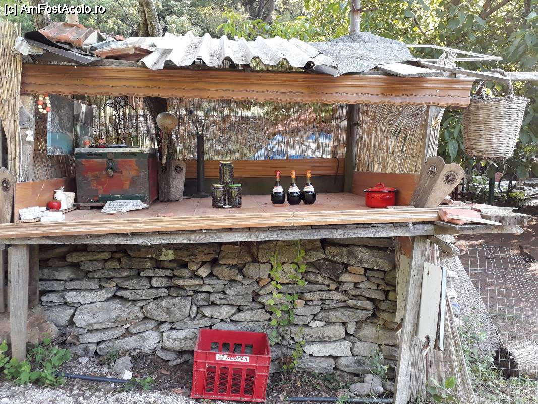 [P05] Magazinul din fața unei grădini, fără vânzător. Îți iei ce vrei și pui banii în oala cu capac roșu din dreapta, pe care scrie "cash".