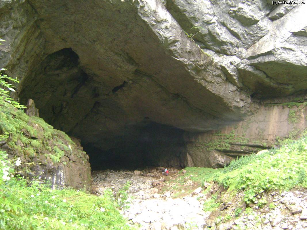 [P25] Pestrea Coiba Mare, in catunul Casa de Piatra. Se observa siluetele unor oameni in pestera, pentru comparatie