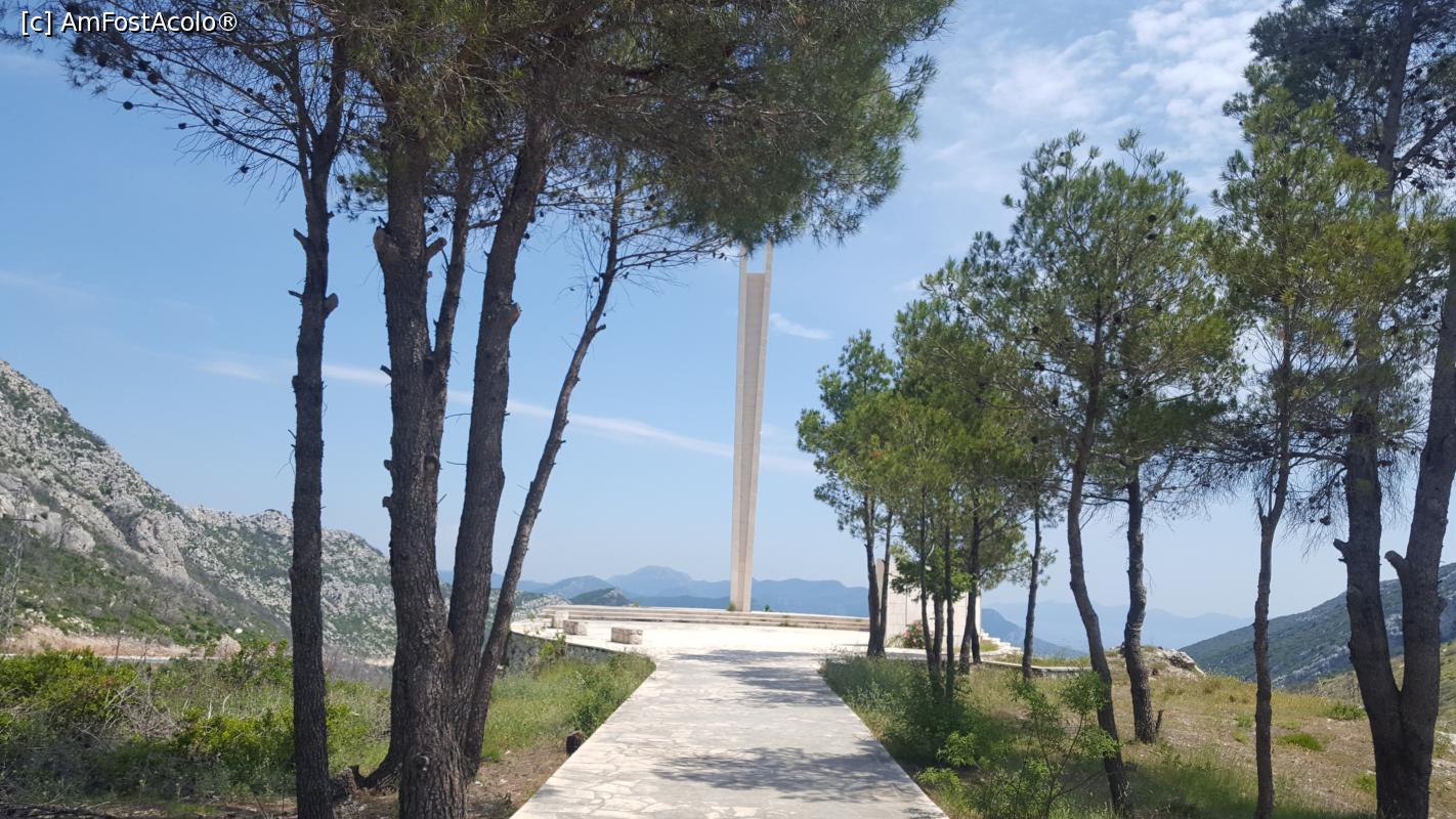 [P47] Peninsula Pelješac - un monument al eroilor chiar în șosea. În spatele lui se deschide un peisaj de vis.