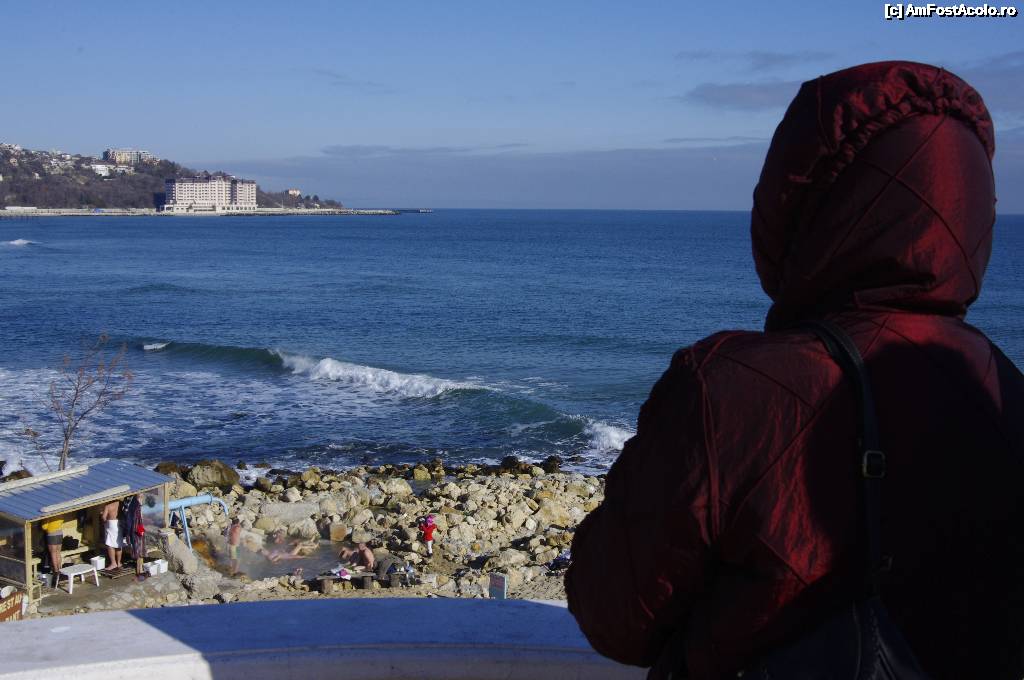 [P22] Baie iarna, pe malul mării, "la conductă"