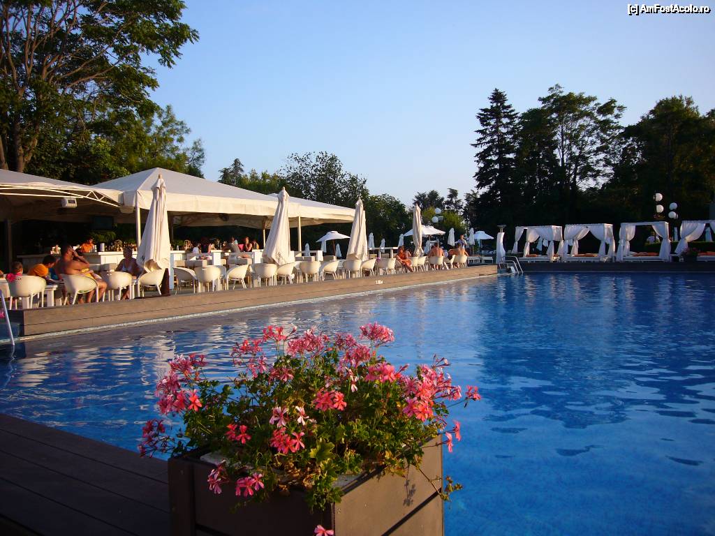 [P02] Dupa amiaza sau in zilele mai putin insorite, turistii se pot delecta la piscina deosebita aflata in imediata apropiere a hotelului, iar la barul alaturat se putea servi o bautura, o cafea sau o racoritoare pe toate gusturile. Seara cate un band delecta timpanele cu acorduri nemuritoare