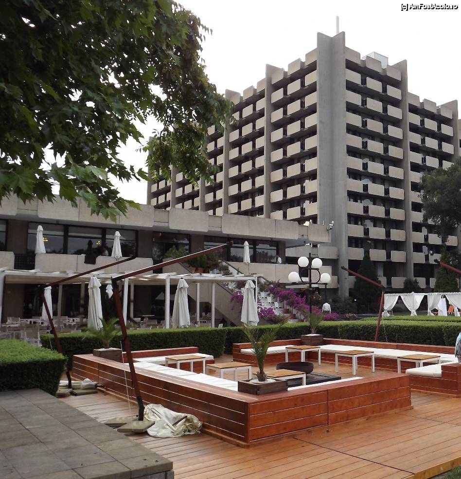 [P02] Aspectul exterior "nefinisat" al hotelului, iar în prim plan - terasa restaurantului asiatic