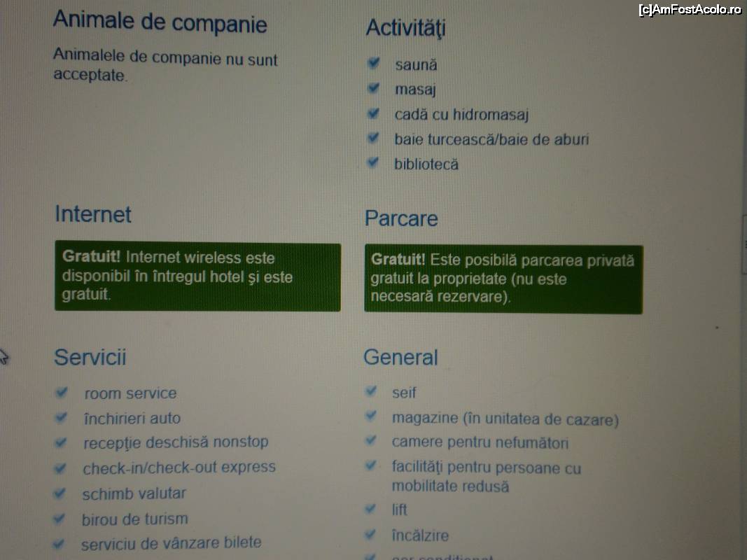 [P02] Pe sit-ul hotelului, mențiunea despre parcare. Nevotabil. Imagine preluată de pe internet.