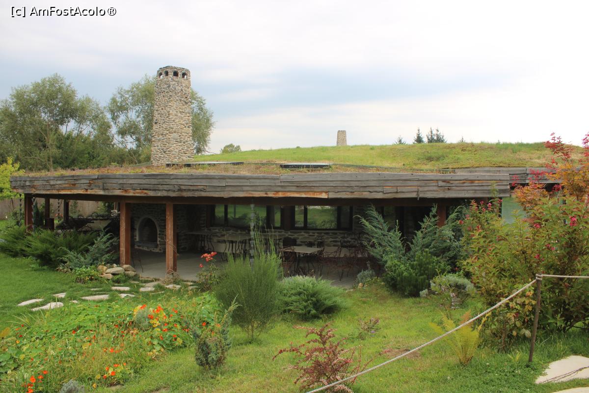 [P05] Porumbacu de Sus, jud. Sibiu, Castelul de Lut, Restaurantul acoperit cu iarbă și flori