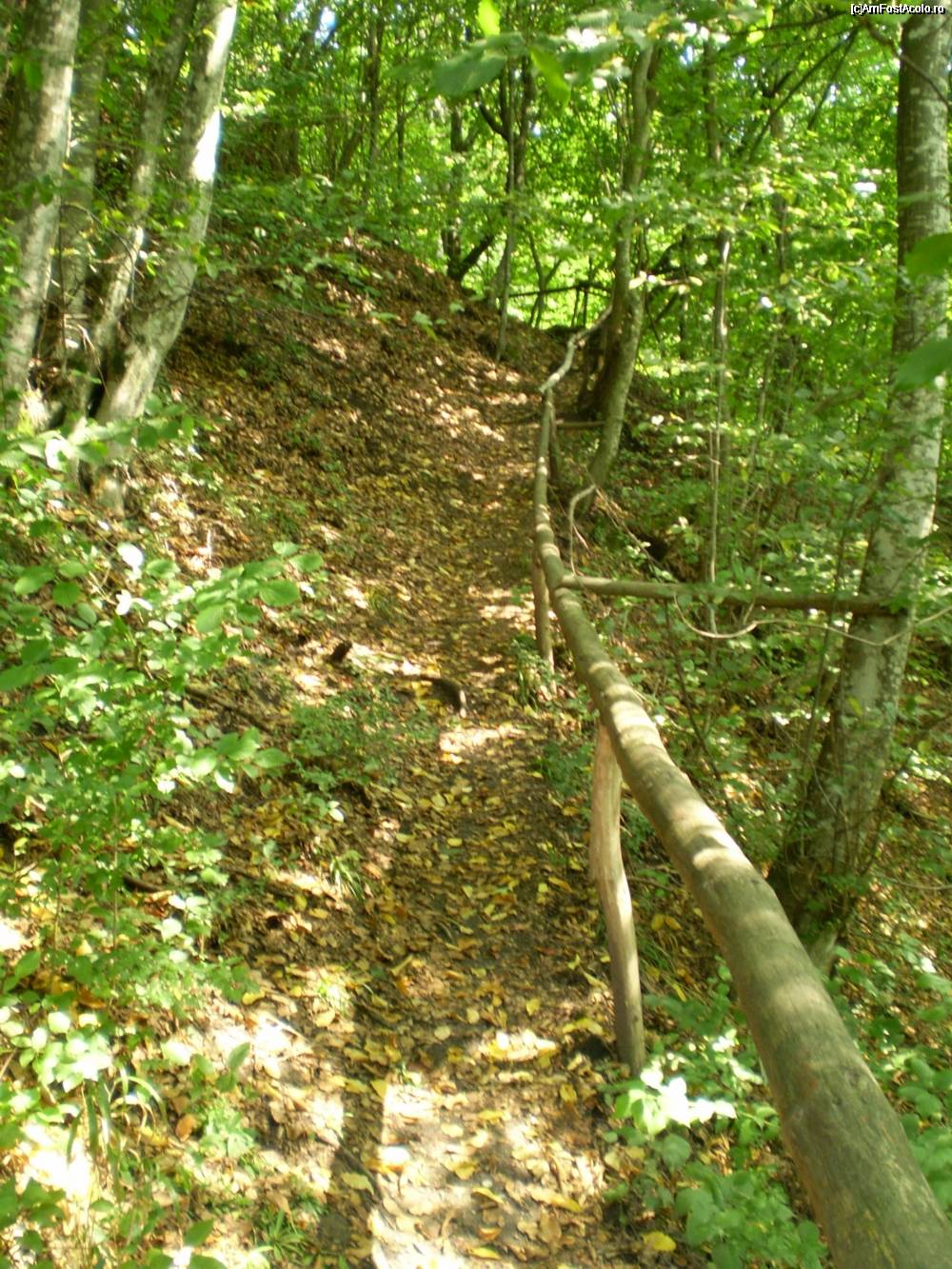 [P03] Cararea prin padure de la Schitul Iezer la Pestera Sfantului Antonie. Pe alocuri este strajuita de bare din lemn menite sa te ajute.