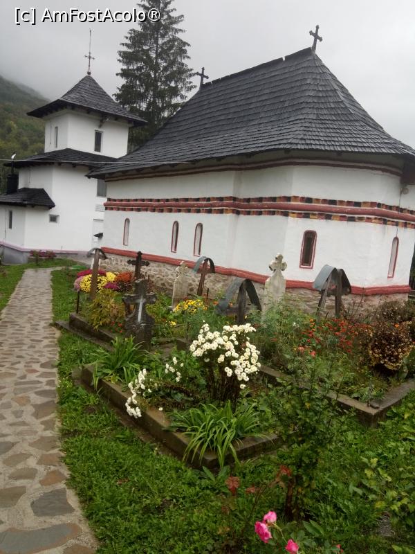 [P22] În curtea schitului Comanca este un mic cimitir. Acoperișul este din șindrilă, iar cornișa este zimțată.