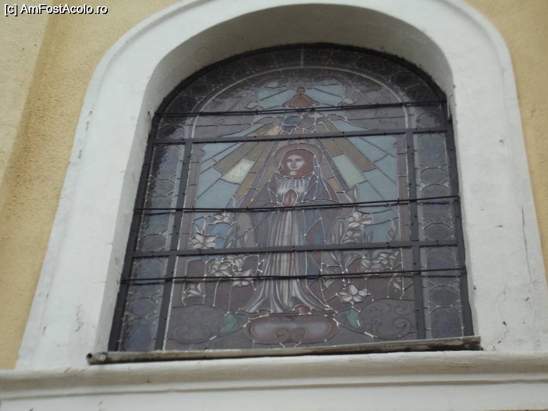 [P53] Reghin - Biserica Romano-catolica - vitraliu deasupra usei de la intrare