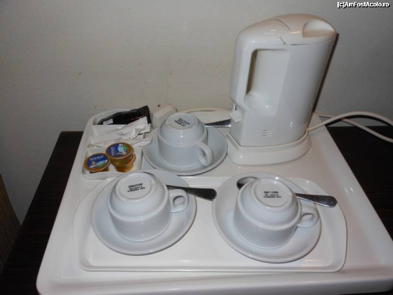 [P11] Livadhiotis City Hotel - Aparat electric pentru apa, cesti cu farfurioare, lingurite, plicuri de ness, zahar si lapte condensat.