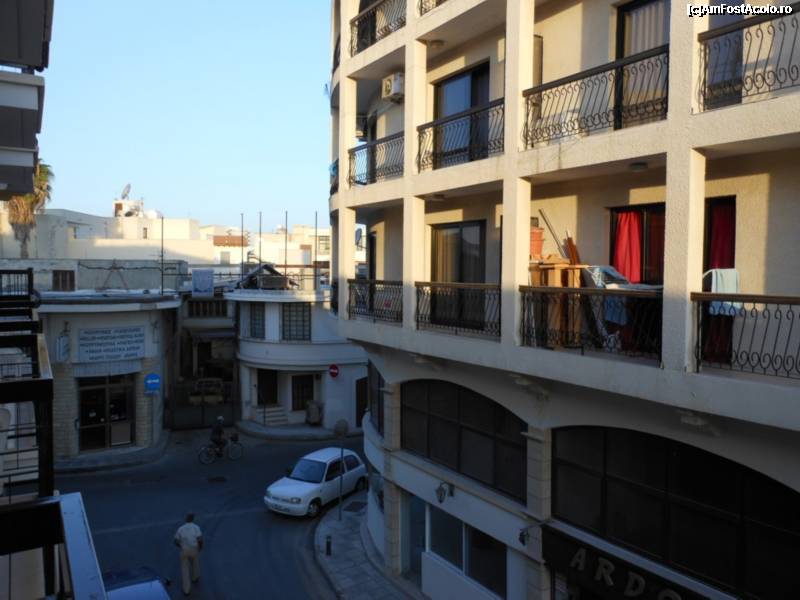 [P21] Livadhiotis City Hotel - Straduta ingusta si cladirea alaturata vazute din balcon.
