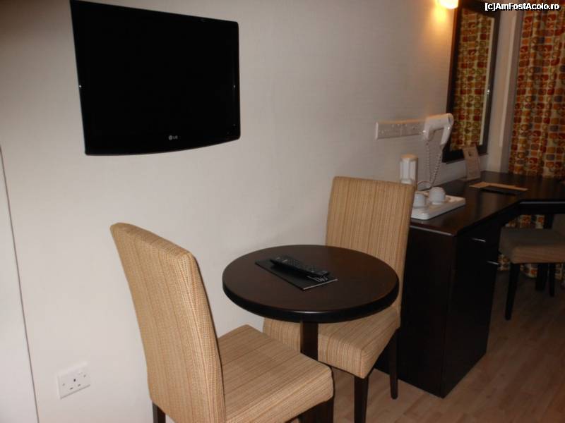 [P08] Livadhiotis City Hotel - Masuta rotunda si TV-ul fixat in perete.