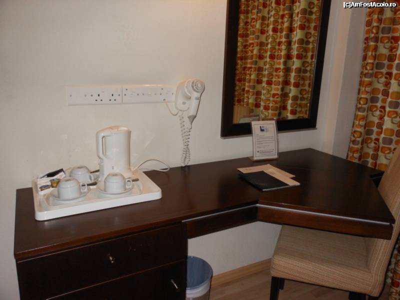 [P09] Livadhiotis City Hotel - Birou, oglinda, foeun si dotarile pentru prepararea unei cafele.